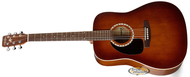 Guitare dreadnaught pour gaucher. Fond et Éclisses : Merisier. Manche : Érable argenté. Table : Cèdre massif (testé pour la pression). Touche et Pont: Palissandre. Fini : fini vernie sur mesure Semi-lustré. Sillet de tête et de pont en Tusq de Graphtech. Fabriquée à la main au Canada.