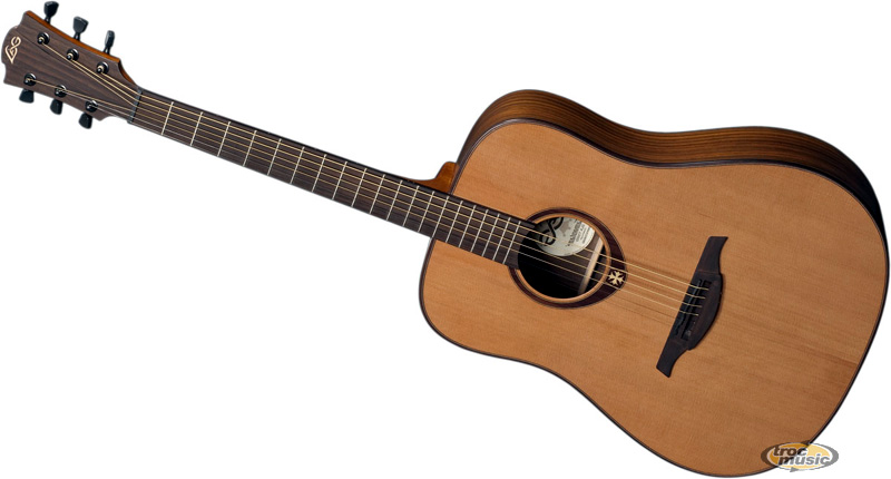 Guitare acoustique gaucher gamme T300, finition French Satin. Table massive en cèdre rouge. Dos et éclisses en palissandre d'Indonésie.