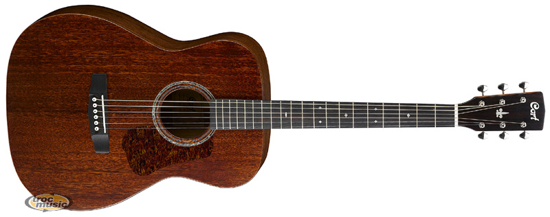 Guitare folk CORT de la série LUCE. Forme Concert. Table acajou massif. Fond acajou massif. Eclisses acajou. Mécaniques Grover. Diapason 643 mm. Corps 91 x 106 mm. Sillet 43 mm. Naturel satiné.