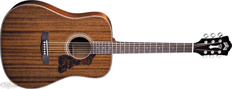 Guitare folk série ''Guild Acoustic Design'', corps type Dreadnought. Table, dos et éclisses en acajou massif. Manche acajou. Touche et chevalet palissandre indien.