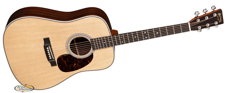 Dreadnought. Table épicéa massif. Dos et éclisses palissandre indien massif. Rosace style 28. Filet herringbone. Barrage ''X'' Scalloped. Manche acajou massif. Touche et chevalet ébène massif. Plaque type écaille. Mécaniques Schaller chrome. Finition vernis brillant. Livrée en étui.