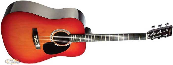 Guitare folk dreadnought. Couleur cherryburst. Table, dos et éclisses tilleul, manche nato, touche et chevalet érable.