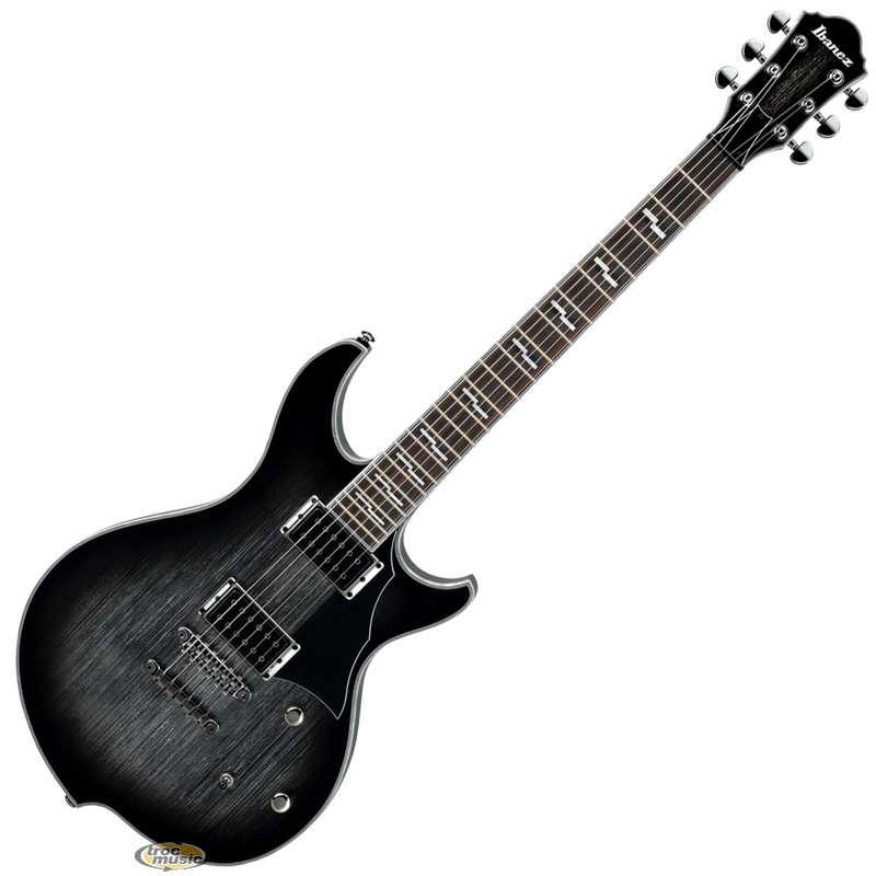 | Guitare électrique heavy métal rock, série Darkstone, couleur gris métal brossé dégradé. Humbucker PP1-N Ibz (manche) + humbucker PP1-B Ibz (chevalet) - accastillage noir chromé - corps en sapele - manche collé en sapele - touche palissandre 22 cases médium avec incrustations rectangulaires - chevalet fixe et cordier Tight Tune. |