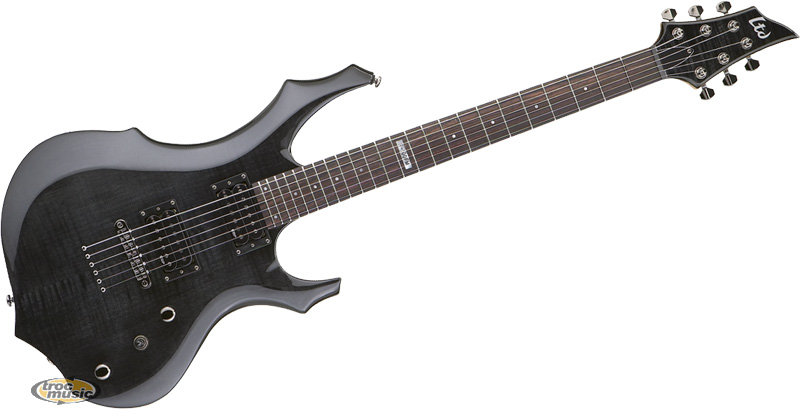 Corps en basswood avec table en érable flammé. Manche vissé 24 cases en érable. Touche en palissandre, frettes Jumbo. Repères par ''points'' nacrés incrustés avec nom du modèle à la 12ème case. 2 micros ESP LH150. Chevalet Tune-O-Matic avec cordes traversant le corps. Mécaniques à bain d'huile. Accastillage nickel noir.