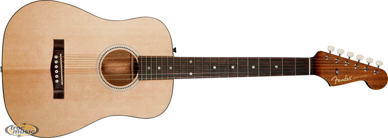 Guitare de voyage réédition du modèle original lancé en 1965. Mini guitare folk, forme Dreadnought. Diapason court (22.6''). Table en épicéa massif. Dos et éclisses en acajou. Barrages en X scallopés. Rosace à damier. Manche acajou, 20 cases, tête ''Strat''. Truss Rod double action. Mécaniques Vintage. Finition naturelle.