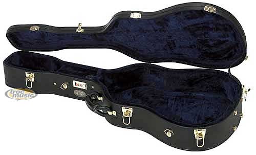 Etui rigide pour guitare classique ou folk. Ossature bois, couvercle robuste et bombé, bords cousus.