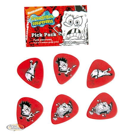Lot de 6 médiators des personnages Bob l'éponge et Patrick l'étoile de mer version Punk - taille : heavy.