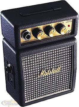 Mini ampli guitare électrique 2 Watts, finition ''Classic''. Volume, tonalité, overdrive. Fonctionne sur pile ou sur secteur.