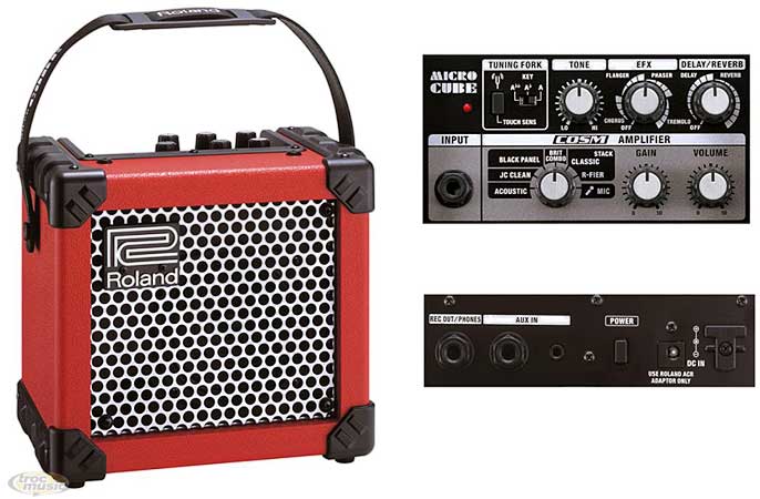 Ampli guitare électrique ultra compact 2 Watts. HP 5'', piles ou adaptateur, 6 effets DSP. Finition rouge.