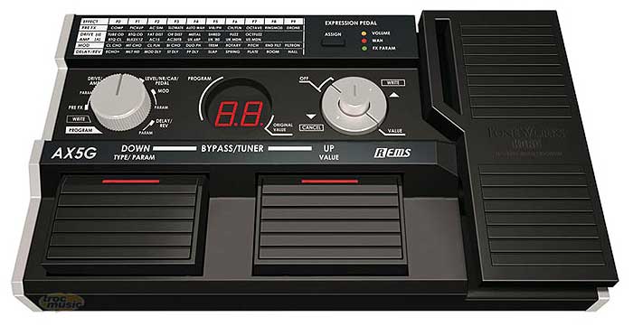 Pédalier multi effet: 16 simulations d'amplis guitares, 10 simulations de baffles, 58 types d'effets, 40 utilisateurs, 40 Presets.