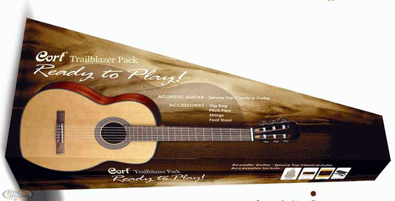 Pack guitare classique comprenant: guitare Cort AC-10 + housse, repose pied, accordeur et cordes.