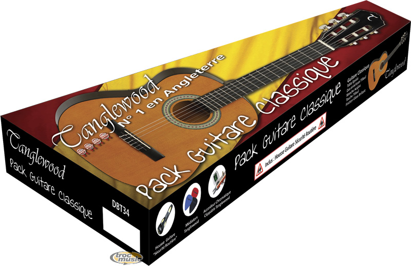 Pack guitare classique taille 3/4, finition vernis brillant. Table en épicéa. Dos et éclisses tilleul. Housse guitare ''sécurité routière''. Médiators. Accordeur Chromatique Clippable.