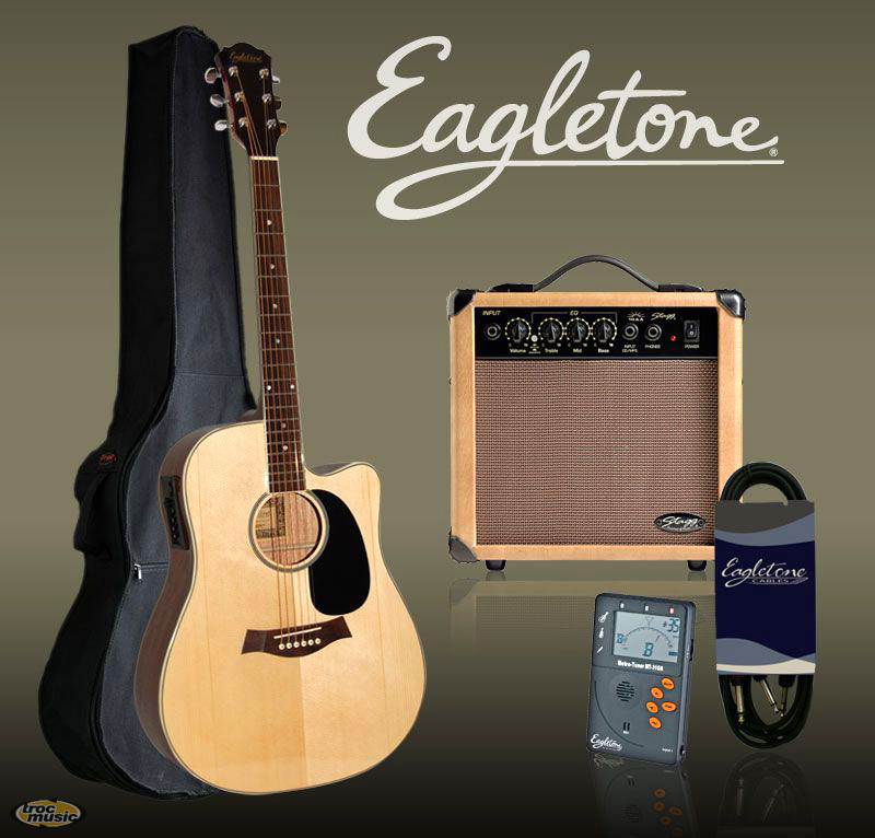Kit guitare électro acoustique Eagletone DG1CE avec ampli guitare acoustique Stagg 10 AA (10W) + accordeur, jack Yellow cable G43D et housse guitare folk.