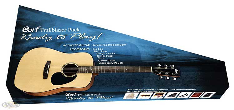 Pack guitare dreadnought AD830 livrée avec housse, diapason, courroie, médiators, capodastre et jeu de cordes.