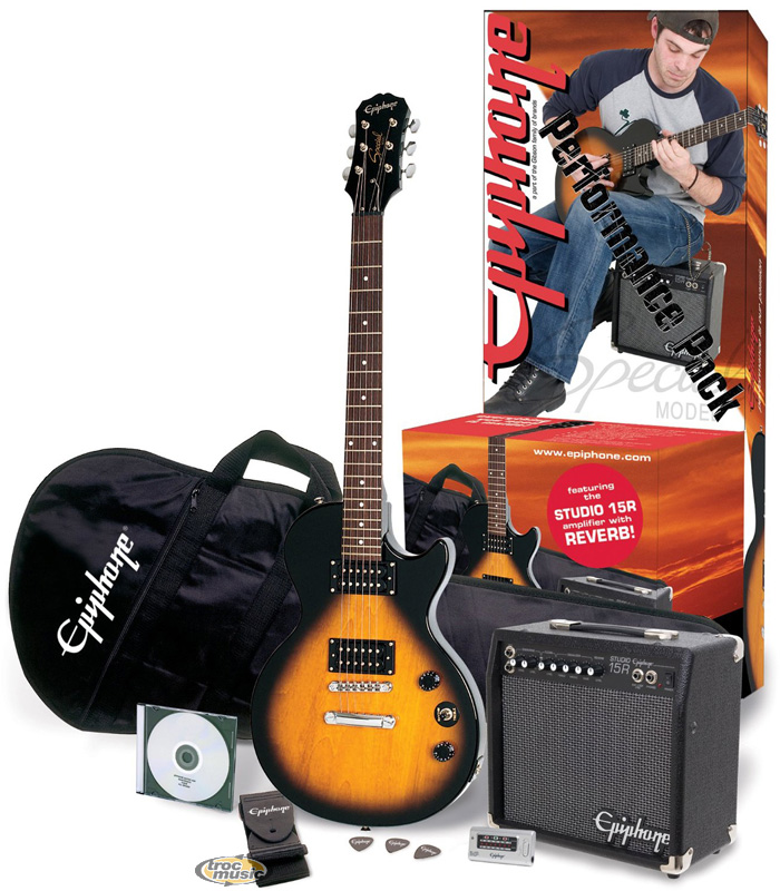 | Pack guitare électrique Les Paul idéale pour débuter, avec inclus un ampli 2 canaux, et tous les accessoires indispensables pour tout guitariste faisant ses premiers pas dans le monde de la musique. Un Ampli 15 watts (HP 8'' Electar Labs Speaker, EQ 3 Bands, Sortie casque). Une Housse. Une Sangle. Un Jack. Un Accordeur Electronique. Des Médiators. |
