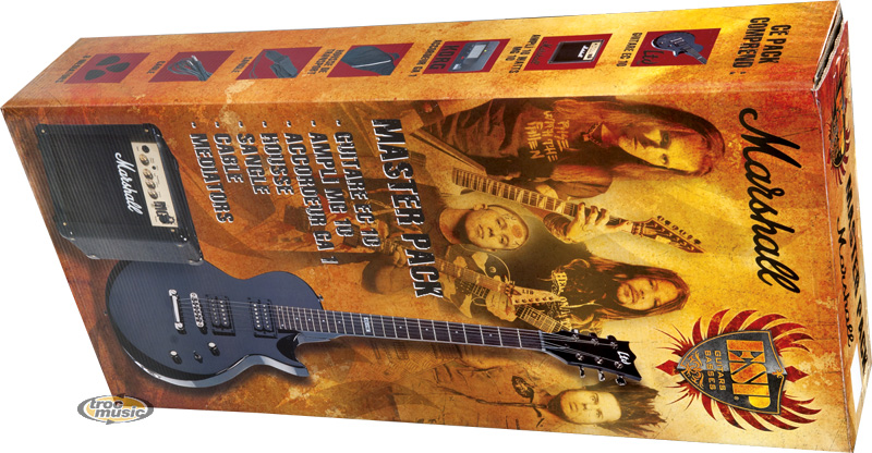 Pack guitare électrique LTD. Guitare LTD EC-10. Ampli Marshall MG10. Accordeur Korg GA-1. Sangle. Housse. Mediators. Cable.