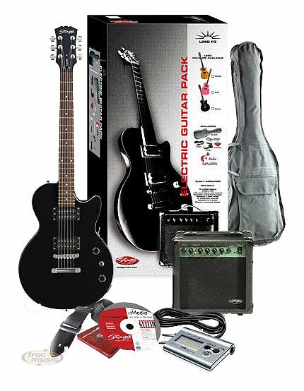 Pack guitare forme Les Paul L250 noir + ampli d'entraînement.