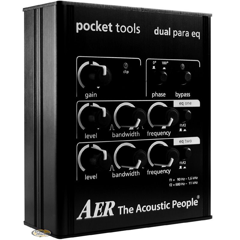 Préampli / égaliseur pour guitare acoustique AER de la série Pocket Tools. Contrôle de gain. Phase. Bypass. 2 égaliseurs paramétriques (niveau, bande de fréquence et fréquence sélectionnable). Sortie ligne. Dimensions : 65 x 105 x 135 mm. Poids : 420 g.