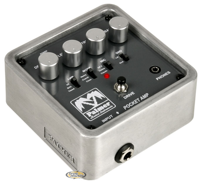 | Le Pocket Amp Palmer est le compagnon idéal pour les guitaristes. Grâce à ses sorties Casque et XLR, vous pouvez travailler votre instrument chez vous, sans déranger personne. En répétition, vous pourrez brancher le Pocket Amp sur la sono du groupe, ce qui évite de devoir transporter systématiquement votre tête d'ampli et votre HP. L'entrée AUX stéréo vous permet de connecter lecteurs CD et MP3 pour jouer sur vos chansons préférées ou travailler un passage particulièrement difficile. Avec ses nombreux presets et la simulation d'amplis (clean et dirty) le Pocket Amp sonne comme un vrai ampli guitare. Il dispose d'une sélection d'ampli, de modes Clean, Crunch et Heavy, de simulations de placement HP/micro, ainsi que de réglages de saturation (Drive), de niveau (Level), d'aigus et de graves pour peaufiner votre son. Fonctionne sur piles ou sur secteur. |
