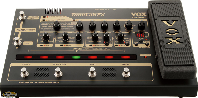 Le ToneLab EX, comme les modèles précédents, embarque le circuit Valve Reactor avec une lampe 12AX7. La liste des modélisations s'est encore étoffée, avec notamment 11 nouvelles pédales de distorsion qui peuvent être utilisées à la place d'une tête d'ampli.
