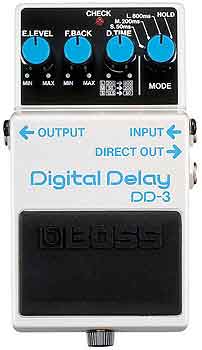 Pédale de Delay avec contôles du volume de l'effet, du Feedback et du temps. Mode: 50ms, 200ms, 800ms et Hold.