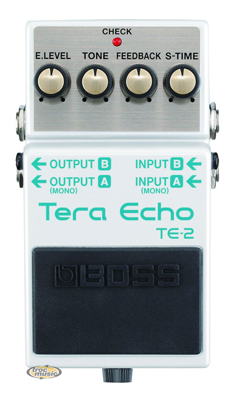 Grâce à la technologie â"Multi-Dimensional Processingâ" (MDP), la pédale TE-2 Tera Echo peut générer des effets stéréo dynamiques qui vont bien plus loin que les réverbs et delays que vous connaissez. Pédale BOSS de nouvelle génération avec technologie innovante Multi-Dimensional Processing reposant sur un nouveau processeur DSP. Effets d'écho et de réverbération extrêmement riches et spacieux. Confère une dimension nouvelle au signal d'entrée sans l'écraser. Maintien du signal d'ambiance avec la fonction â"Freezeâ" - idéal pour accompagner un solo ou créer un effet spécial. Réaction ultra précise aux variations de volume et à la dynamique du jeu. Vaste éventail de traitements du son avec des commandes simples. Entrée et sortie mono ou stéréo.