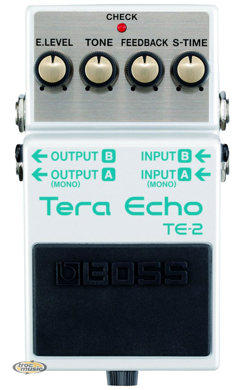 Pédale de delay. Impédence d'entrée: 500 kOhm. Impédence de sortie: >10 kOhm. Niveau de bruit: -110dBm. Consommation: 11mA. Dimenssions: 2-1/2'' W x 2-1/16'' H x 4-3/4'' L.