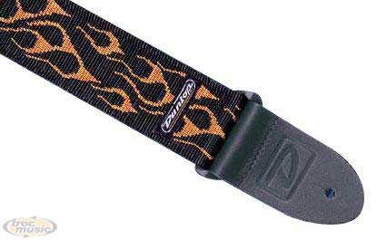 Sangle pour guitare électrique, nylon. Couleur: flamme rouge sur fond noir.