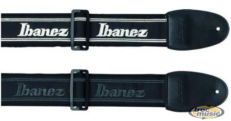 Sangle guitare avec logo Ibanez. Largeur 60mm, longueur 1500mm. Finition noire ou argent.