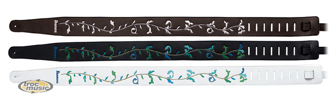 Sangle guitare en cuir avec motif arbre de vie en relief. Deux finitions : cuir noir ou cuir blanc.