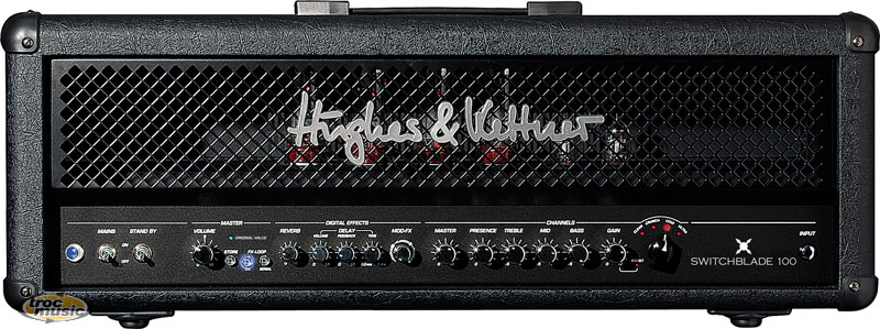 | Tête à lampes 100w série Switchblade. Préampli 4 canaux à lampes (2x12AX7). Contrôles par canal : volume, gain, présence, grave, médium, aigu, boost. Contrôles de la section Master: FX Mix, Presence, Master Volume. Ampli de puissance 100W à lampes (4xEL34). Sorties HP 1x4 ohms, 1x8/2x16 ohms ou 1x16 ohms. Multi-effets (3 effets cumulables) incluant Reverb, Delay avec Tap Tempo, et Mod Fx (Chorus, Flanger, Tremolo). 128 mémoires utilisateurs permettant de stocker vos paramètres de canal et d'effets. Boucle d'effets avec mode parallèle ou série et inter/-10dB. Connections: FX Send/Return, pédalier (control du changement de canal). Pédalier de commande MIDIFSM-432 MKII inclus, pour rappel des programmes et contrôle du Tap Delay. MIDI In et MIDI thru. Poids & Dimensions : 17,6Kg; 750x286x258mm. Baffles suggérés : VC412A30, VC412B30. |