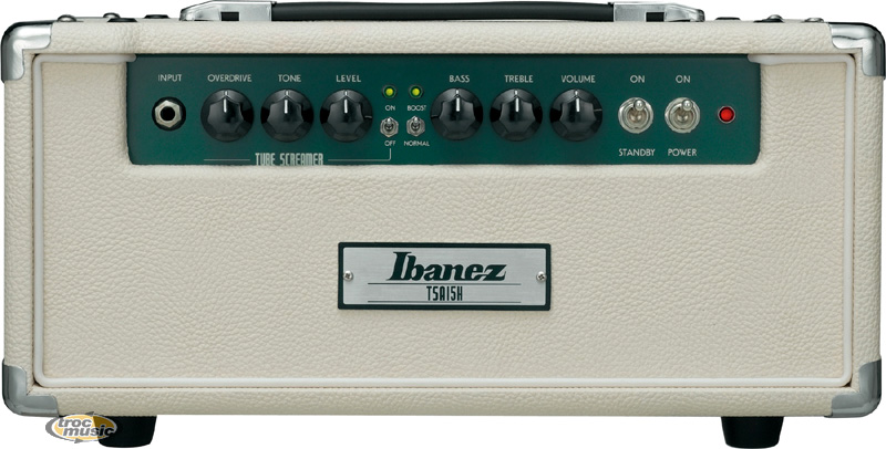 | Tête d'ampli à lampes. 2 lampes 12AX7 (préamp), 2 lampes 6V6 (puissance). 2 modes: pentode (15W) et triode (5W). boucle d'effet. Contrôles: Volume, Basse, Treble. switch Boost 6 db in/out. Circuit Tube Screamer avec overdrive, tone, niveau, et switch in/out. revêtement vinile crème. entrée footswitch IFS2G (non inclus). sortie HP : 2x16 Ohm, 2x8 Ohm, 1x4 Ohm. poids: 7,6kg. Dimensions 460(L) x 305(P) x 410(A)(mm). |