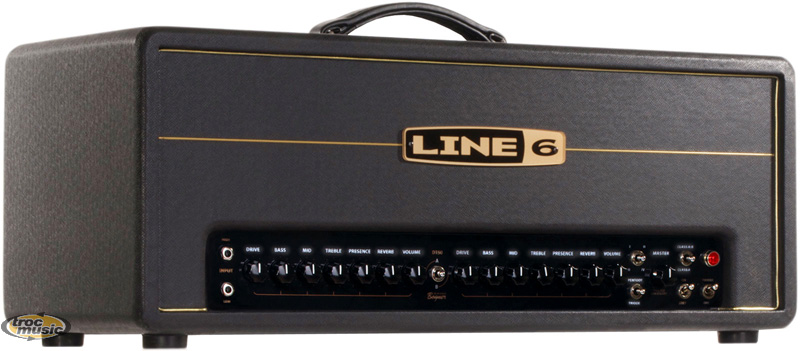 | Tête d'ampli guitare 25/50 Watts. Advanced HD modeling technology. (2) 12AX7 preamp, (2) EL34 power amp (25W/50W). Simple and straightforward 2-channel design. Each channel: Drive, Bass, Mid, Treble, Presence, Reverb, Channel Volume. Master volume. Reconfigurable analog components (Class A/Class AB; Pentode/Triode). MIDI in and out. Footswitch jack for channel switching. 4, 8 and 16-ohm speaker outs. |