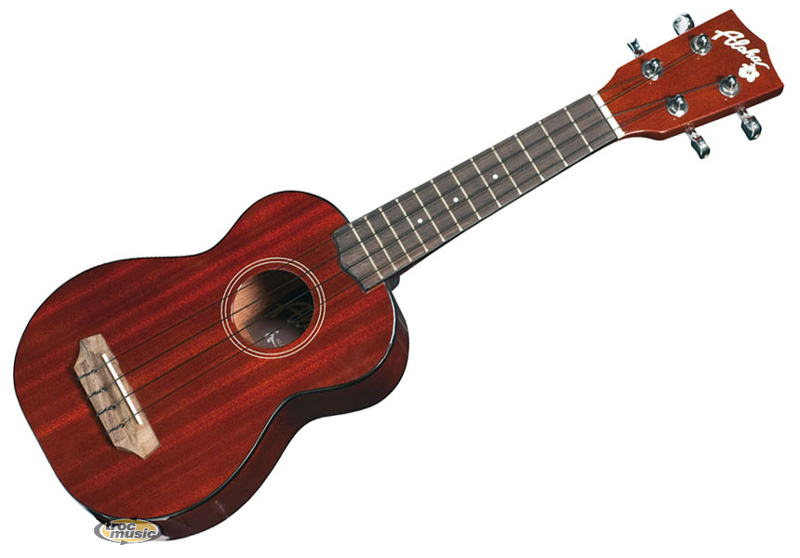 Ukulélé soprano acajou. Mécaniques : Chromées. Sillet de tête : Crème. Manche : Acajou. Touche : Palissandre. Diapason : 345 mm / Soprano. Corps : Acajou, filets noirs. Chevalet : Palissandre. Finition : Vernis brillant. Housse : Siglée Aloha.