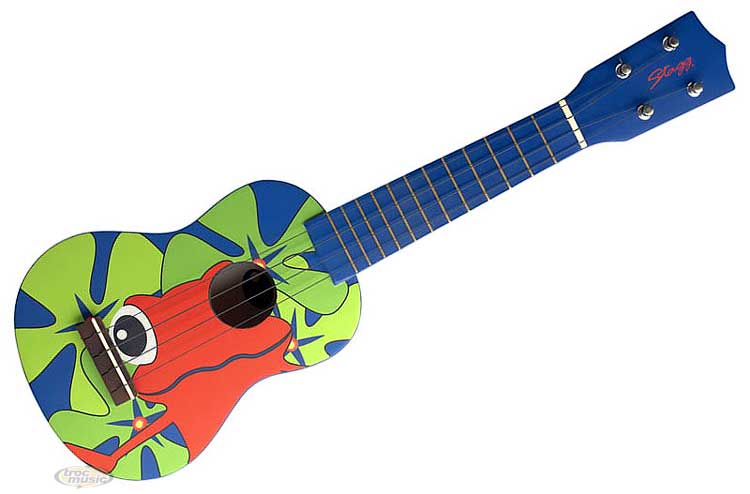 Ukulélé enfant avec dessin de Grenouille. Table, touche et chevalet nato. Diapason 349 mm.