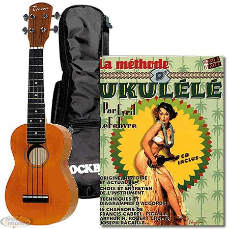 Pack complet: Ukulélé + housse et méthode CD.
