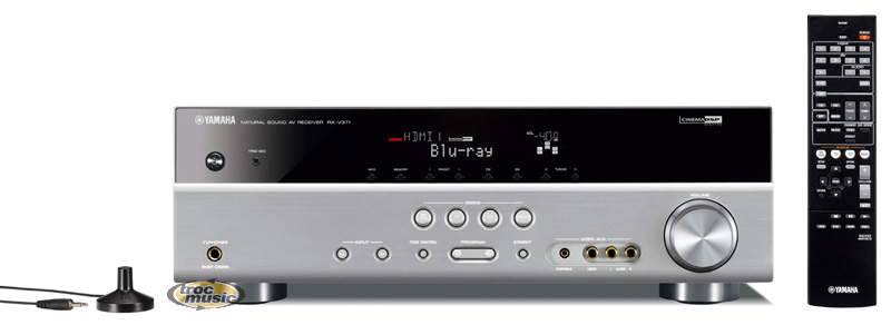 Amplificateur home-cinéma Yamaha RX-V371 Finition Titane ou Noir : 3D Ready - ARC - Décodages audio HD - HDMI 1.4 (4 entrées/1 sortie) - 5 canaux - Calibration automatique YPAO - Modes SCENE - 17 modes CINEMA DSP - Station d'acceuil pour iPod/iPhone (en option).