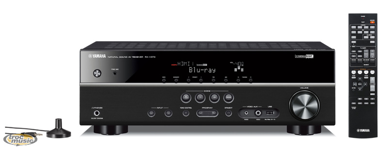 Amplificateur home-cinéma Yamaha RX-V373 Noir ou Titane - Puissance 5x100 W, Made for iPhone, HDMI ARC & 4K, calibration YPAO, décodage audio HD, 17 modes DSP, tuner FM, mode ECO et télécommande.