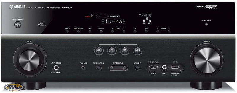 Amplificateur home-cinéma Yamaha RX-V773 Noir ou Titane - Puissance 7x160 W, Made for iPhone, AirPlay, Ethernet DLNA, HDMI ARC & 4K, calibration YPAO multipoint, OSD couleur, décodage audio HD, mode ECO, entrée phono, pré-out 7.2 et télécommande.
