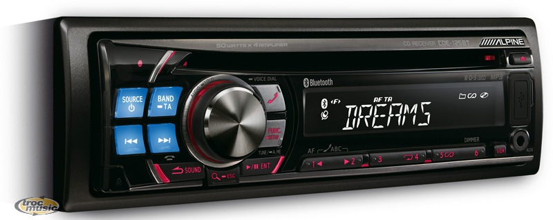 Autoradio lecteur CD Bluetooth/USB et iPod. Amplificateur de haute puissance 4 x 50 W. Ecran LCD blanc (14 segments). Port USB en façade. CD/USB. Entrée auxiliaire en façade. Compatible iPod et iPhone. Câble iPod / iPhone fourni. Module Bluetooth Parrot intégré.