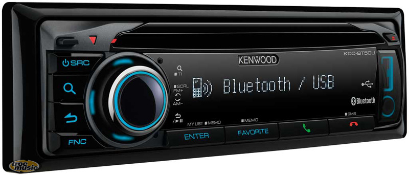 Bluetooth intégré mains librs et profil audio. Ecran full DOT FL, 2 lignes. Illumination variable des touches. Menu texte multi-language & support tag. Entrée AUX & USB frontale illuminée. Contrôle direct iPod avec câble optionnel KCA-ip101.