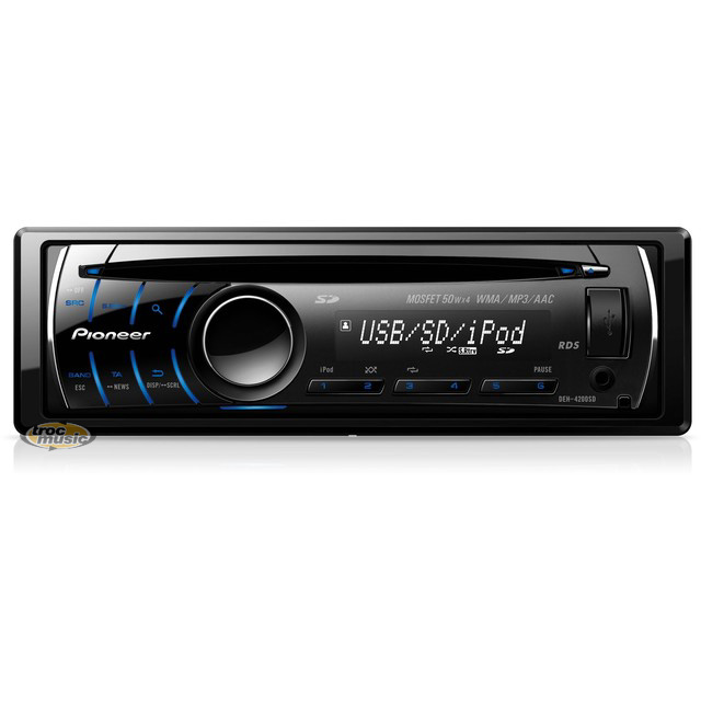 Autoradio CD/MP3 4 x 50 W, compatible carte SD, port USB, compatible iPhone/iPod, tuner AM/FM.
