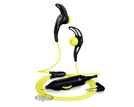 | Ecouteurs intra-auriculaires Sennheiser-Adidas, développés pour les sportifs. Transducteur dynamique. Réponse en fréquence : 18 - 20 000 Hz. Niveau maximal de pression sonore (SPL): 120 dB. Impédance nominale 16 ohms. Connecteur Jack 3,5 mm stéréo. Longueur de câble : 0,6 m + rallonge 0,6 m avec contrôle volume. Poids sans cable : 10 g. |