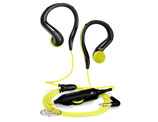Ecouteurs tours d'oreilles Sennheiser-Adidas, développés pour les sportifs. Transducteur dynamique. Réponse en fréquence : 18 - 20 000 Hz. Impédance nominale : 16 ohms.