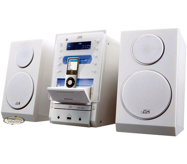Chaîne micro CD oblique avec station d'accueil basculante pour iPod, USB Host et lecture de fichiers MP3/WMA. Puissance totale de 60 W.