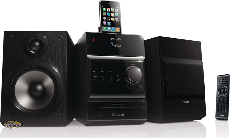 Microchaîne classique avec station d'accueil pour iPhone/iPod. Puissance (RMS) : 100 W. Disques lus : CD, CD-R/-RW. Tuner : FM avec RDS. Dock iPod : Oui.