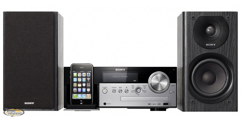 Micro-chaîne hi-fi avec station d'accueil directe pour iPod. 100 W RMS, amplificateur num. S-Master, Wi-Fi, USB, iPod, CD, tuner FM, entrée audio, télécommande.