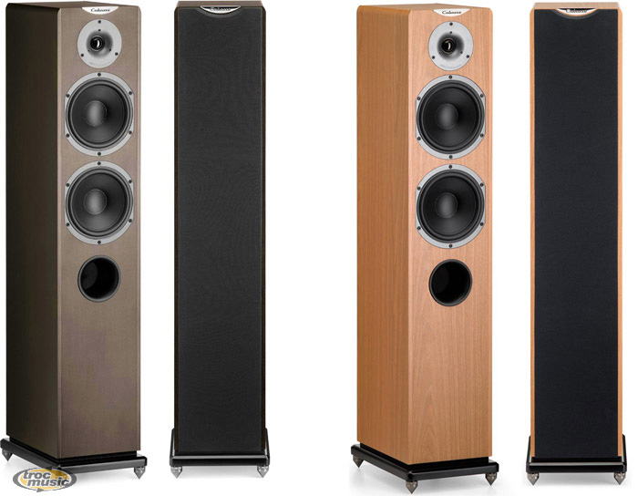 Paire d'enceintes colonnes type 2 voies à charge bass-reflex, 3 haut-parleurs dont deux de 17 cm, puissance 100 W (700 W en crête) et technologie AIRE-Air. Finition : Cerisier ou Wengé.