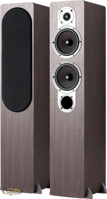Paire d'enceintes colonne système 2 voies Bass Reflex, 3 haut-parleurs dont deux médium/grave de 14 cm et puissance RMS 100 Watts. Finition : Noir ou Wengé.