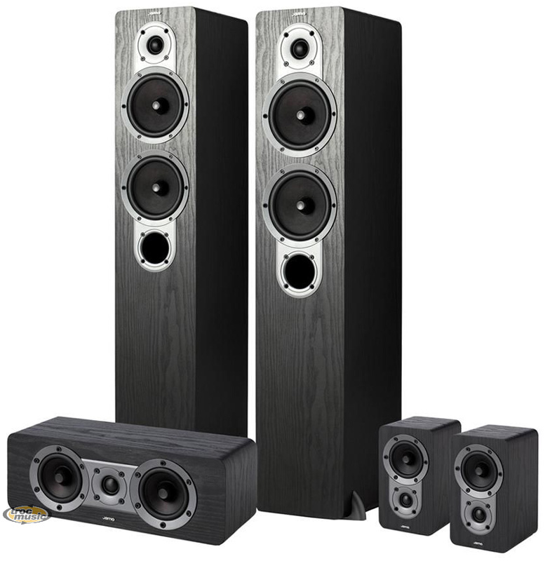 Pack 5 enceintes home-cinéma Jamo S426-HCS3 Noir. Comprenant la paire d'enceintes colonne S426, l'enceinte centrale S400 CEN et la paire d'enceintes surround S420 SUR.